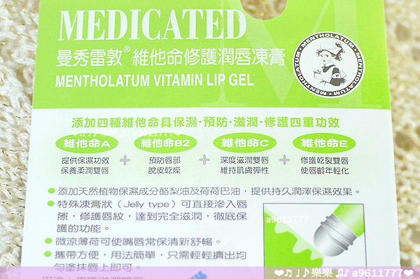 Mentholatum曼秀雷敦 維他命修護潤唇凍膏